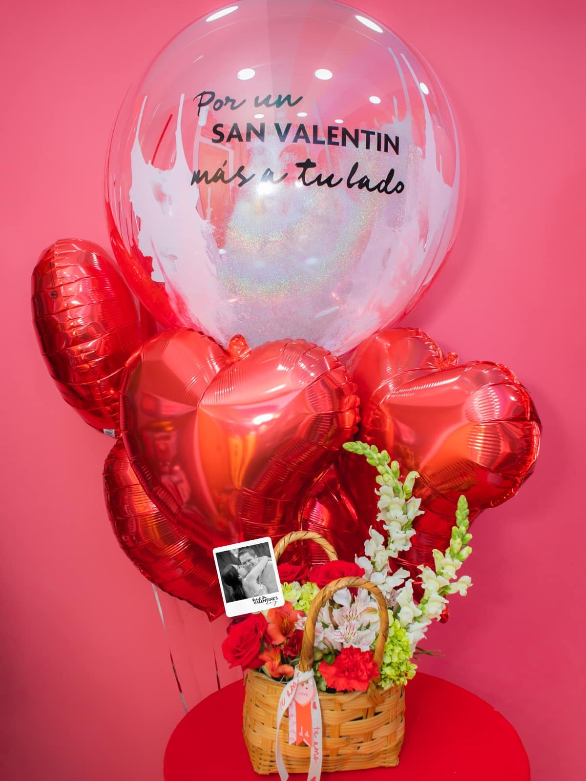 BURBUJA GRANDE + 5 CORAZONES METALICOS + BOLSA FLORAL
