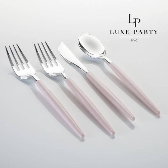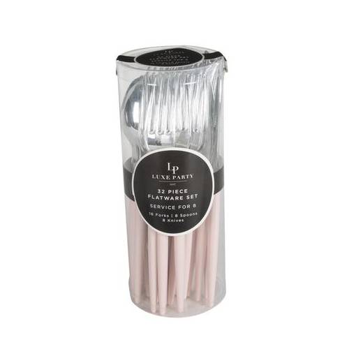 Cubiertos de plástico re-utilizables. Cada paquete incluye 16 tenedores, 8 cuchillos y 8 cucharas.