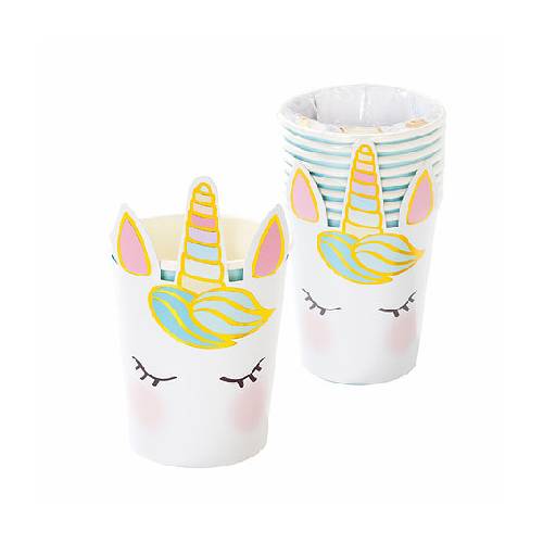 ¡Trae la magia a la mesa! Estos vasos de unicornio cuentan con llamativos detalles de foil dorado y características destacadas de las orejas y el cuerno de los unicornios.